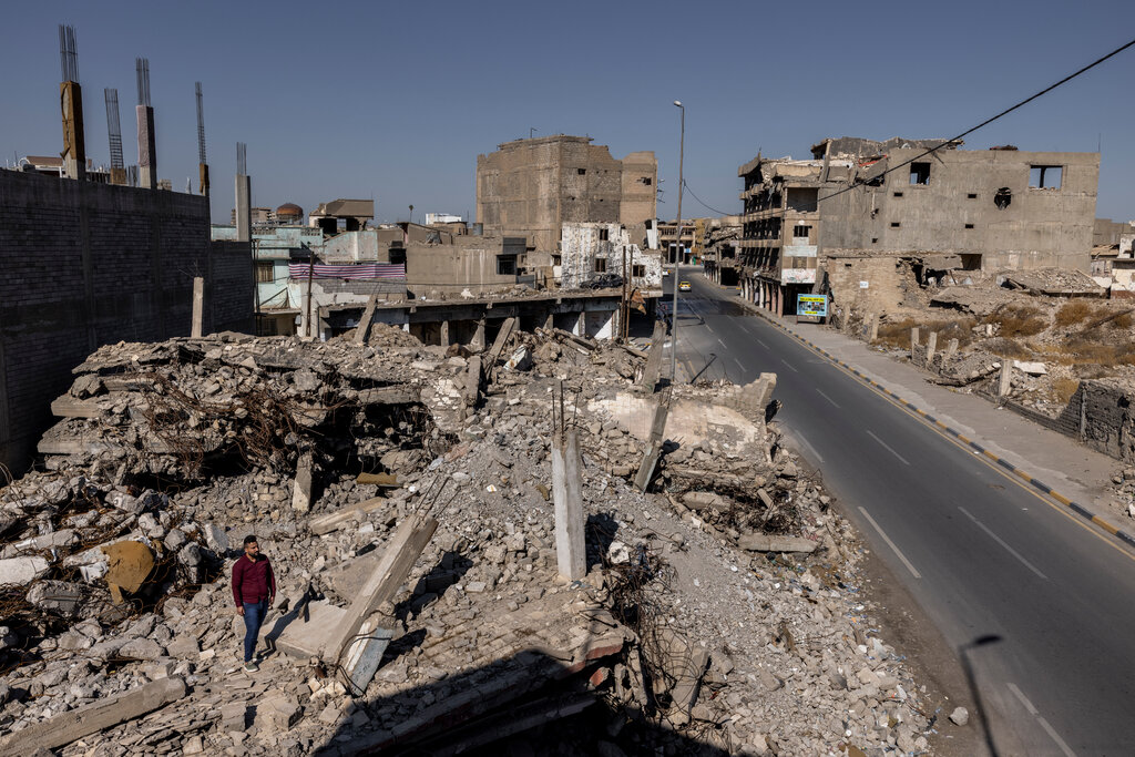 While I waited for those requests to work their way through the system, I returned to Iraq. Razzo and his family had lived on the eastern side of Mosul. In early 2018, I returned to investigate the western side of the city. I wanted to survey the Old City in West Mosul the same way I had the eastern side of the city. My intent was to go methodically from door to door, interviewing locals and documenting each impact area I found. But in the Old City, there were hardly any doors left to knock on. Much of the area had been reduced to rubble. To clear space for vehicles to pass, heavy machinery had been brought in to push the scattered concrete blocks, household debris and even some body parts into little hills of wreckage on either side of the roads.