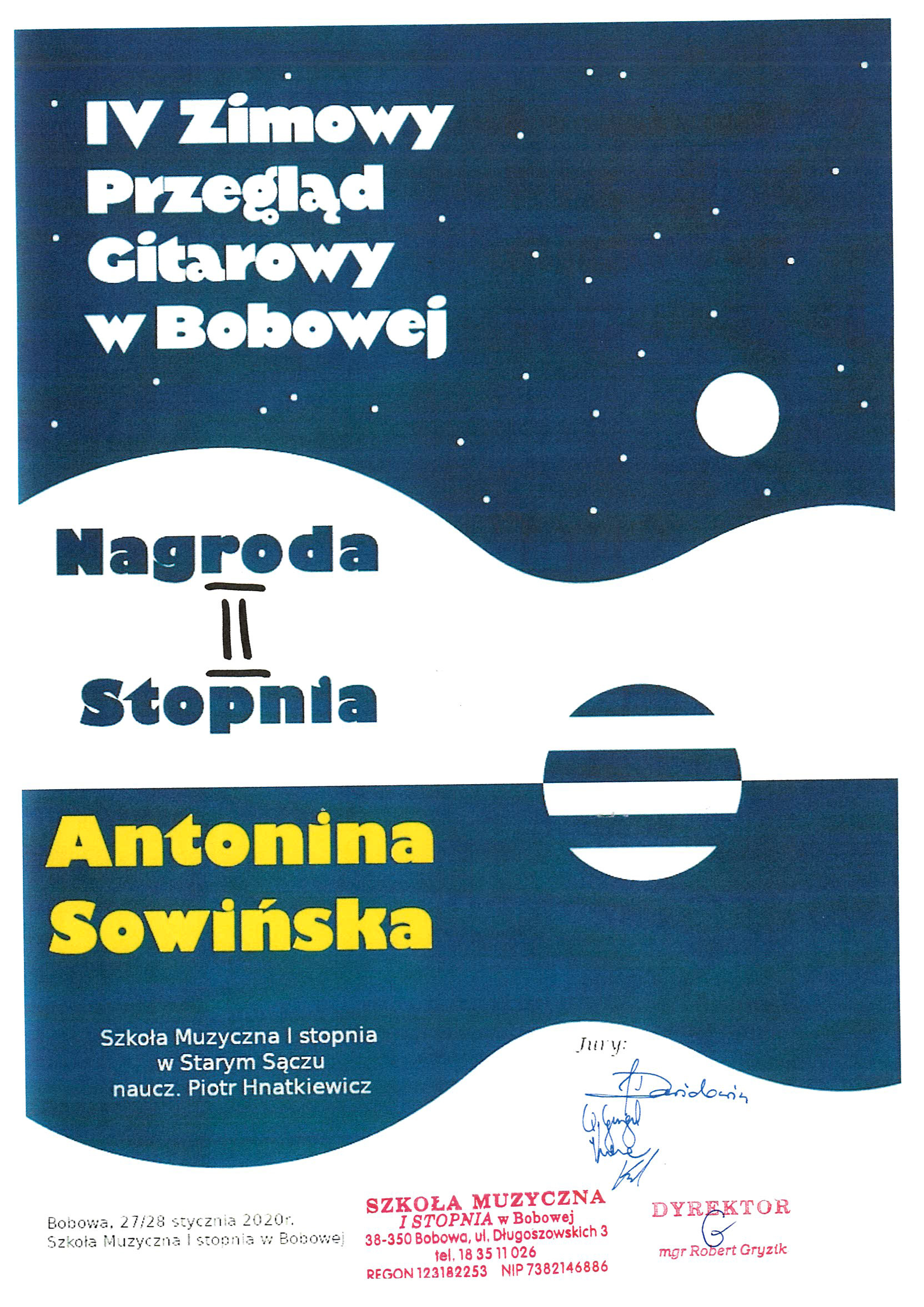 Gratulujemy Ewelinie Tomasiak i Tomaszowi Pawlikowi życząc jednocześnie pomyślnego rozwoju w nauce gry na gitarze i dalszych sukcesów w przyszłości!