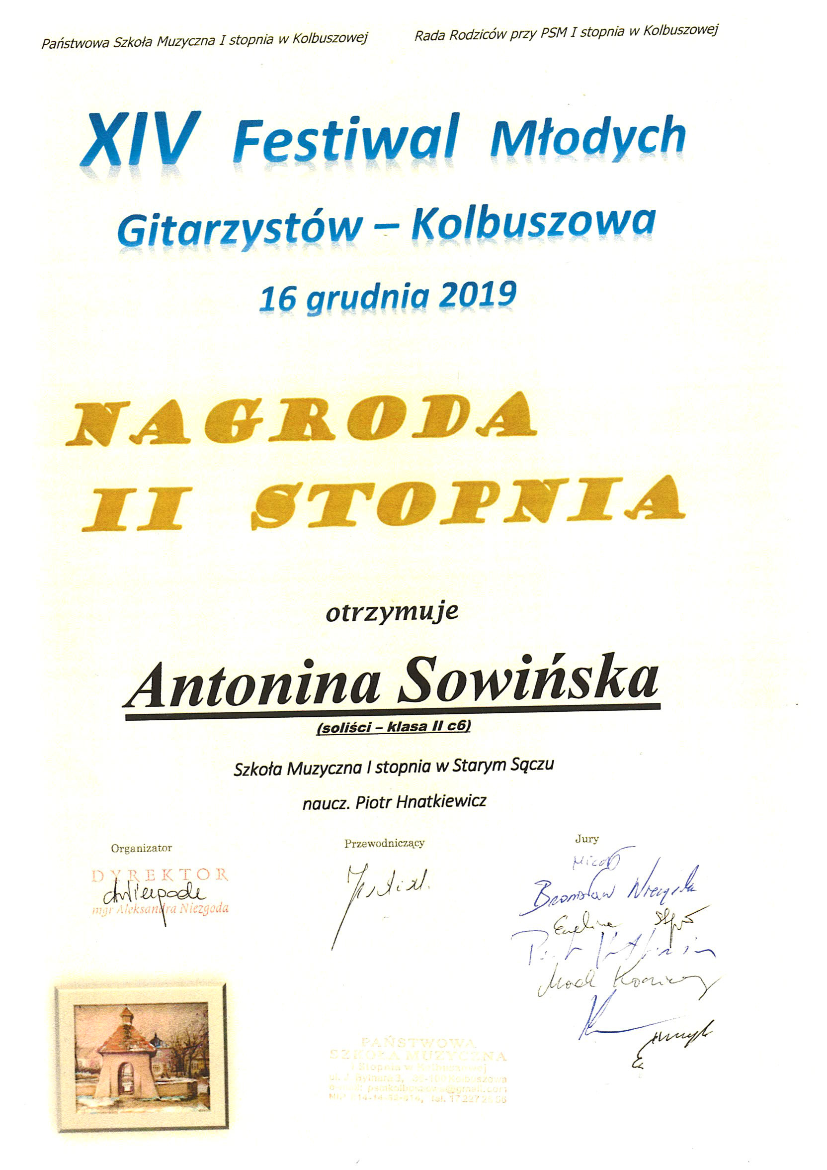 Po wysłuchaniu występów wszystkich uczestników, Jury przyznało Michałowi - Dyplom w randze Medalu Srebrnego, a Anieli - Dyplom w randze Medalu Brązowego.