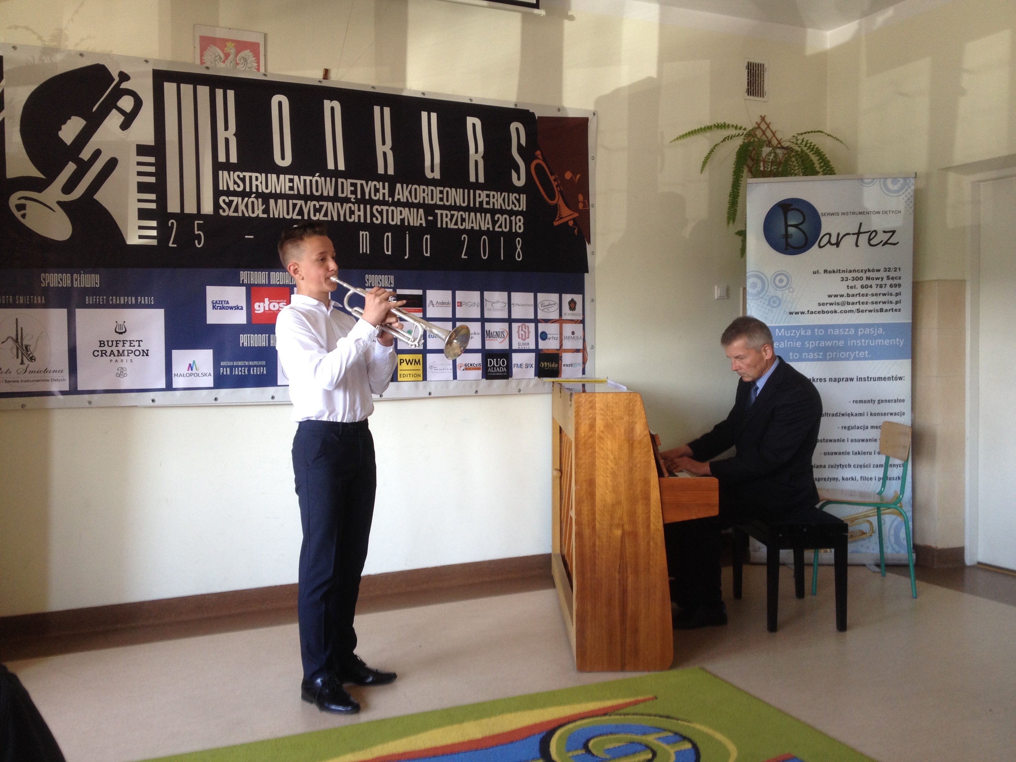 W dniu 8 marca 2018 r. w PSM I i II stopnia im. F.Chopina w Nowym Targu odbyły się ,,X Konfrontacje Instrumentów Dętych''. W przesłuchaniach wzięło udział 137 uczniów z 41 szkół. Warunkiem udziału w konkursie było wykonanie z pamięci dwóch kontrastujących utworów. Naszą szkołę, w kategorii trąbka- młodsza grupa, reprezentował Piotr Kuchnia z klasy I cyklu 4-letniego, który uczy się pod kierunkiem pana Piotra Biela. Podczas występu uczniowi towarzyszył na fortepianie pan Zbigniew Szewczyk.