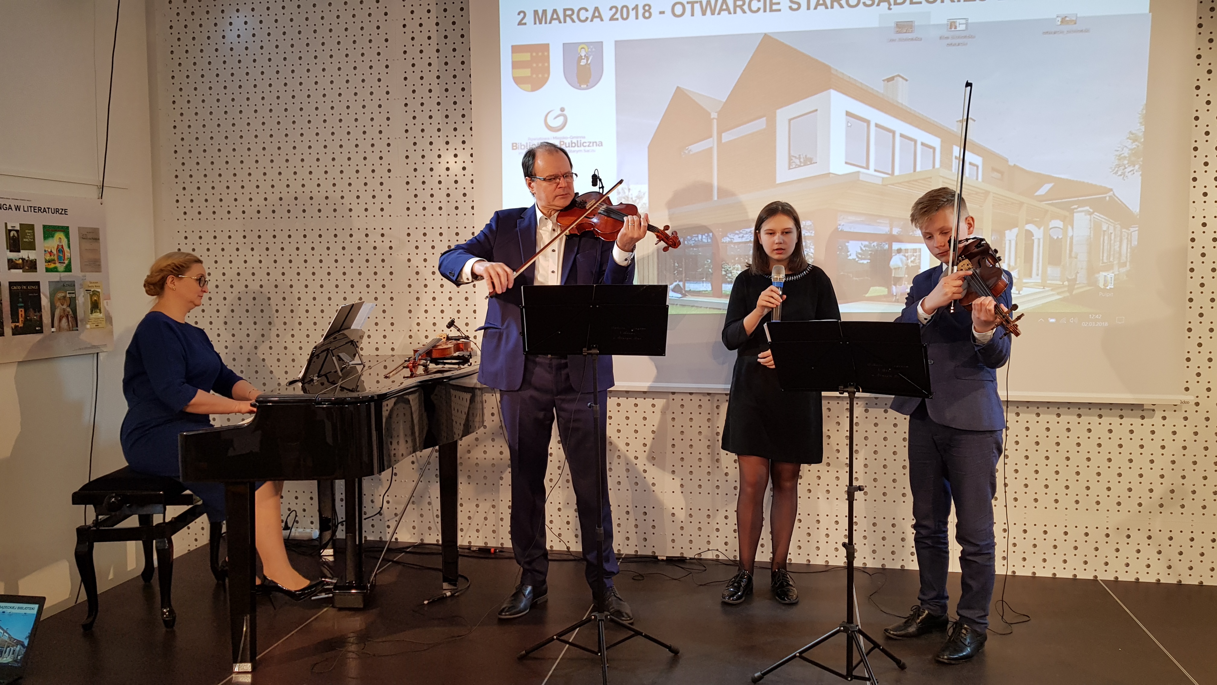 Oprawę muzyczną zapewnili uczniowie Szkoły Muzycznej I Stopnia w Starym Sączu. Fortepian - Dyrektor placówki Pani Joanna Ustarbowska -Dudka, skrzypce -Pan Stanisław Dudka i Kacper Nowak, wokal i skrzypce-Karolina Lach.